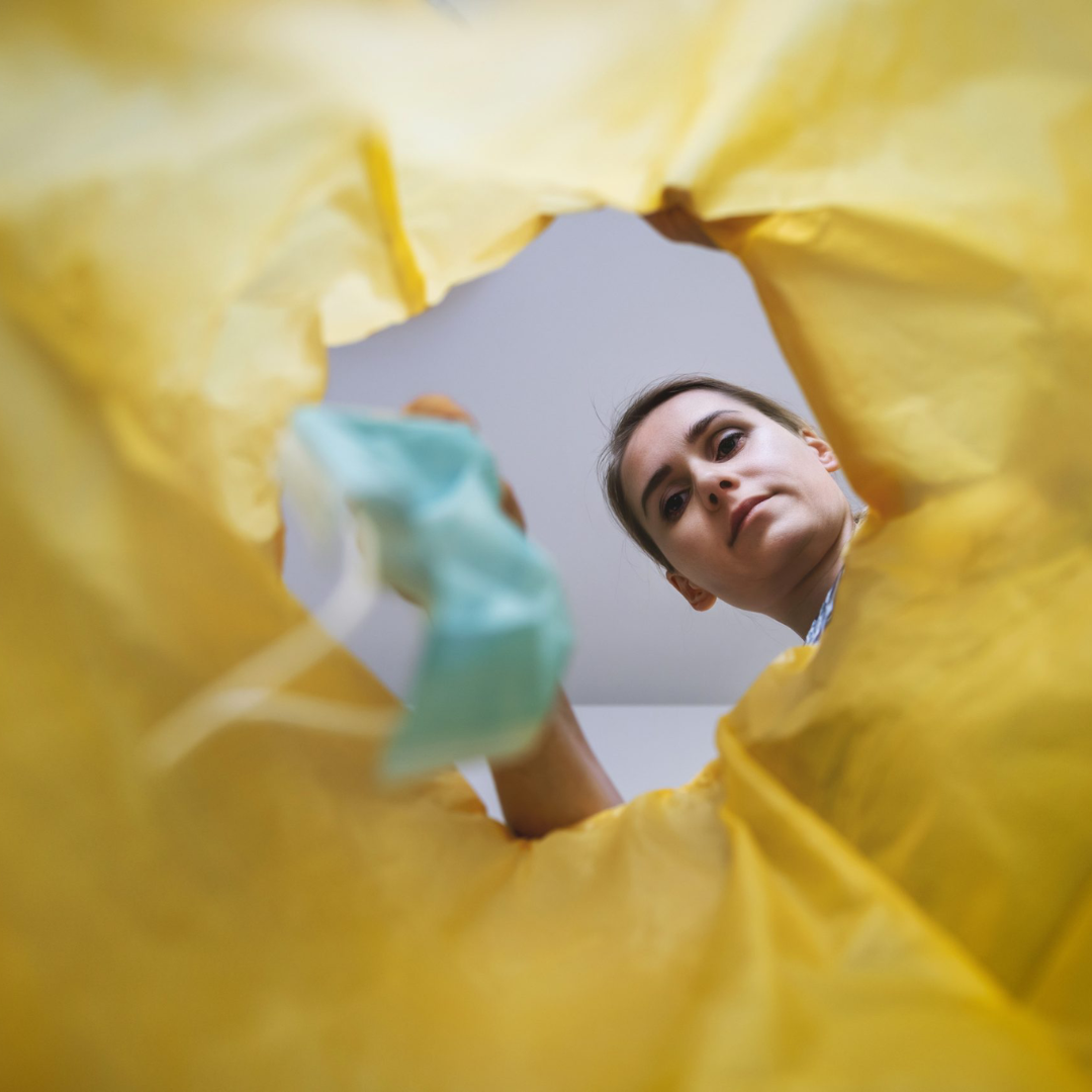 Sacii galbeni Biohazard se utilizează în pubele prevăzute cu capac și pedală sau în portsac.